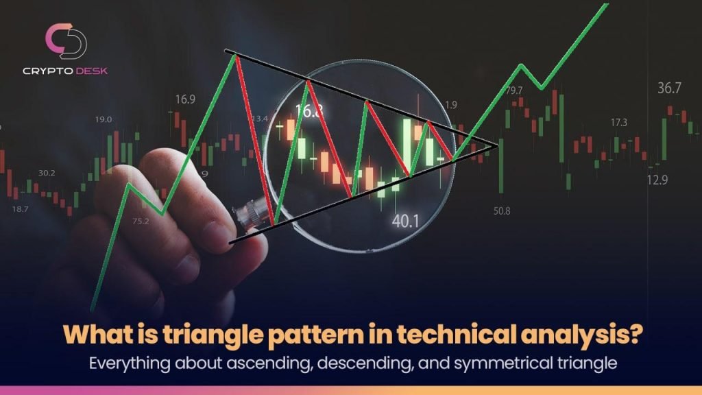 Like all other technical analysis patterns, a triangle is a repetitive pattern generating buy and sell signals. Its name is taken from its shape that represents a triangle. Unlike most patterns that only have an ascending and a descending type, the triangle pattern has an additional type called “symmetrical”. Stay with us up to the end of this article to find out what a triangle pattern is, what signals it can generate, and what functions its different types have.